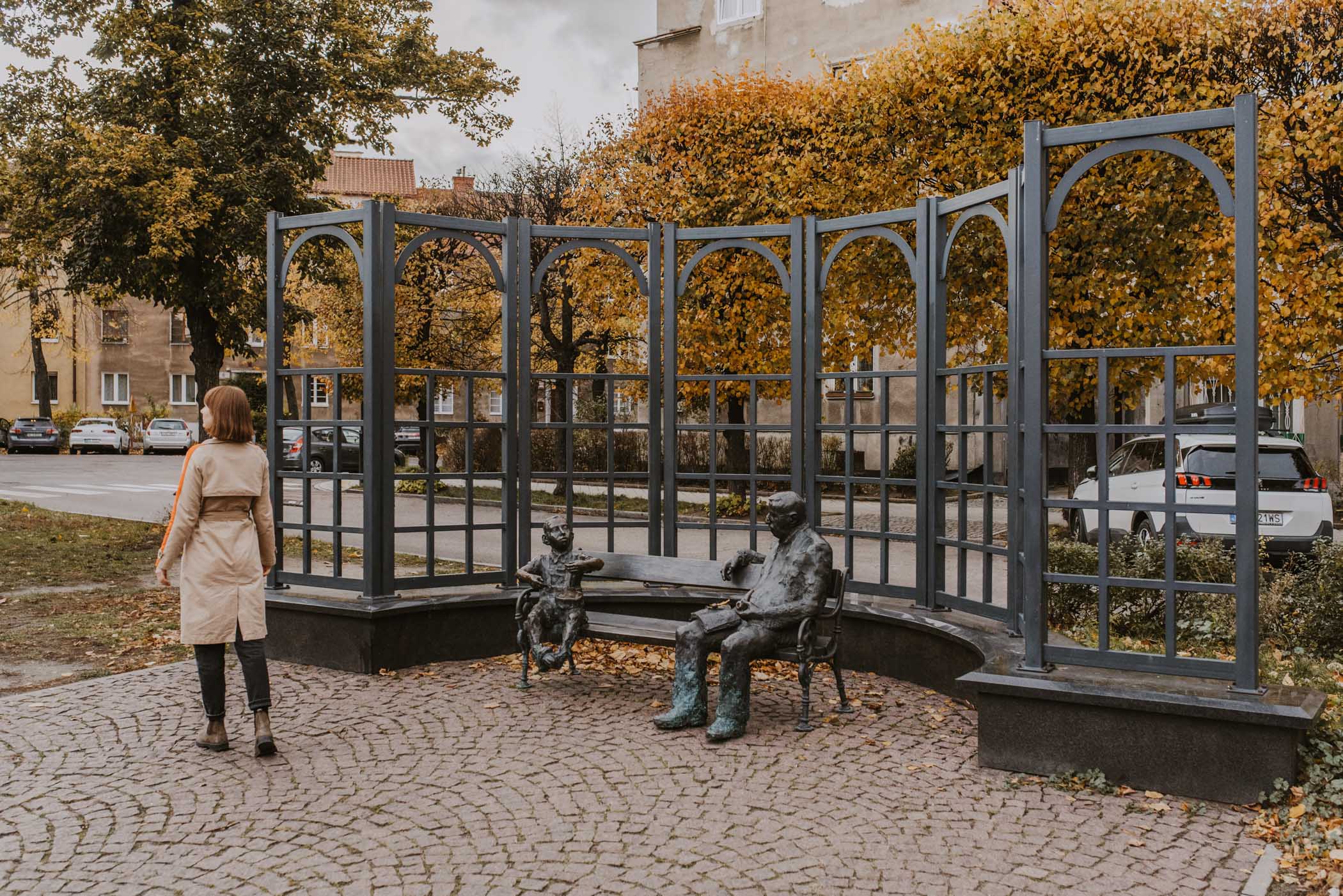 Tuż obok znajduje się Park Wybickiego, w którym szczególną uwagę zwraca pomnik – ławeczka, a na ławeczce siedzi Günter Grass z fajką wraz z Oskarem grającym na bębenku. Bardzo lubię to miejsce – szczególnie w czasie złotej polskiej jesieni siadam przy Oskarze i słynnym pisarzu wpatrując się w nostalgiczne, jesienne otoczenie.