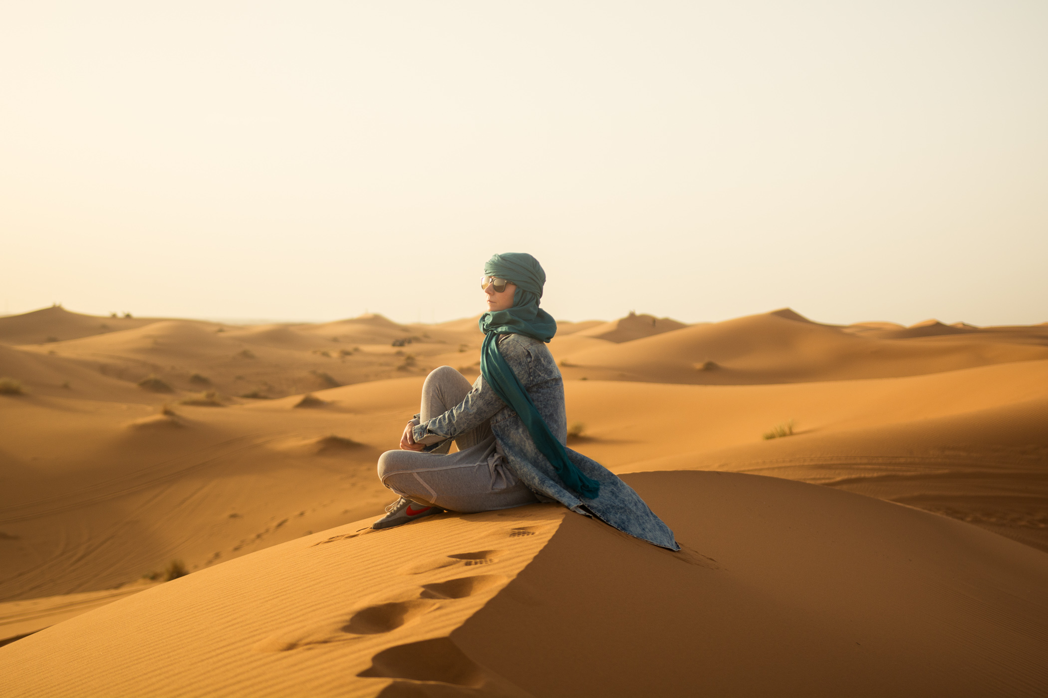 Bฤdฤ c w samym sercu pustyni sลychaฤ tylko wiatr, to jak koniec ลwiata. Nie ma nic prรณcz ogniลcie pomaraลczowego piasku mieniฤ cego siฤ w promieniach zachodzฤ cego sลoลca. Uczucie, ktรณre towarzyszyลo nam w tym momencie jest nie do opisania. Wฤdrowaliลmy razem z naszymi wielbลฤ dami i czuliลmy niesamowitฤ wolnoลฤ.