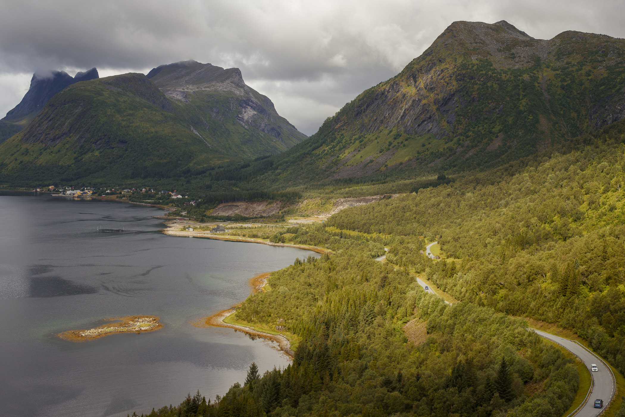 Podrรณลผujฤ c po wyspie Senja koniecznie naleลผy przejechaฤ krajobrazowฤ trasฤ o nazwie Senja Scenic Road. Widoki, ktรณre widzi siฤ zza szyb samochodu sฤ niesamowite. Fiordy, wzburzone morze, szerokie plaลผe, urocze wioski. Ta widokowa trasa liczy aลผ 102 kilometry i znajduje siฤ w zachodniej czฤลci wyspy. Pod drodze natrafia siฤ rรณwnieลผ na topowe atrakcje wyspy, takie jak: punkty widokowe Bergsbotn i Tungeneset oraz plaลผฤ Ersfjordstranda, ale o tym piszemy w dalszej czฤลci artykuลu.